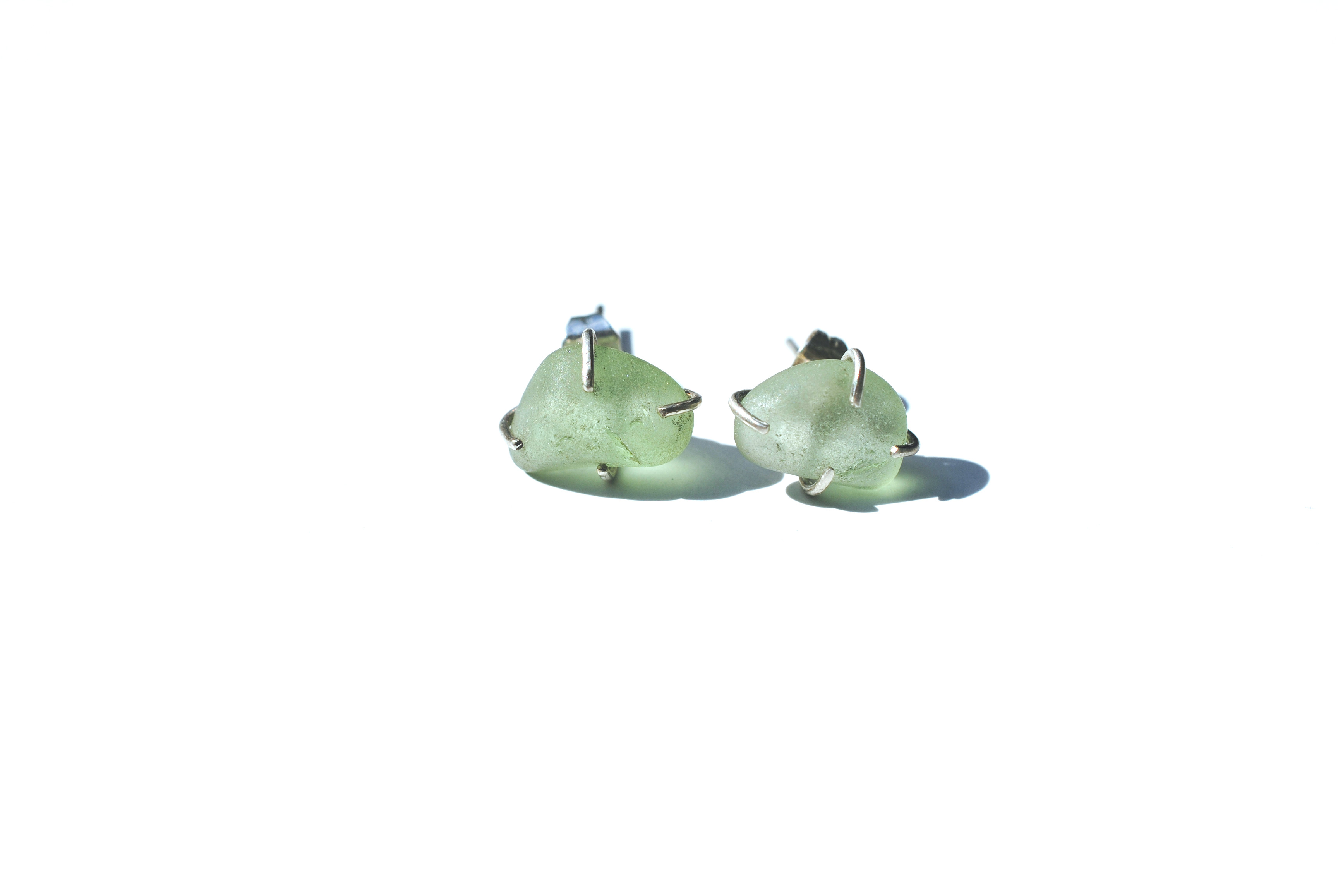 These chunks of sea glass were hand picked on the shores of Puerto Rico. Set in .925 Sterling silver.