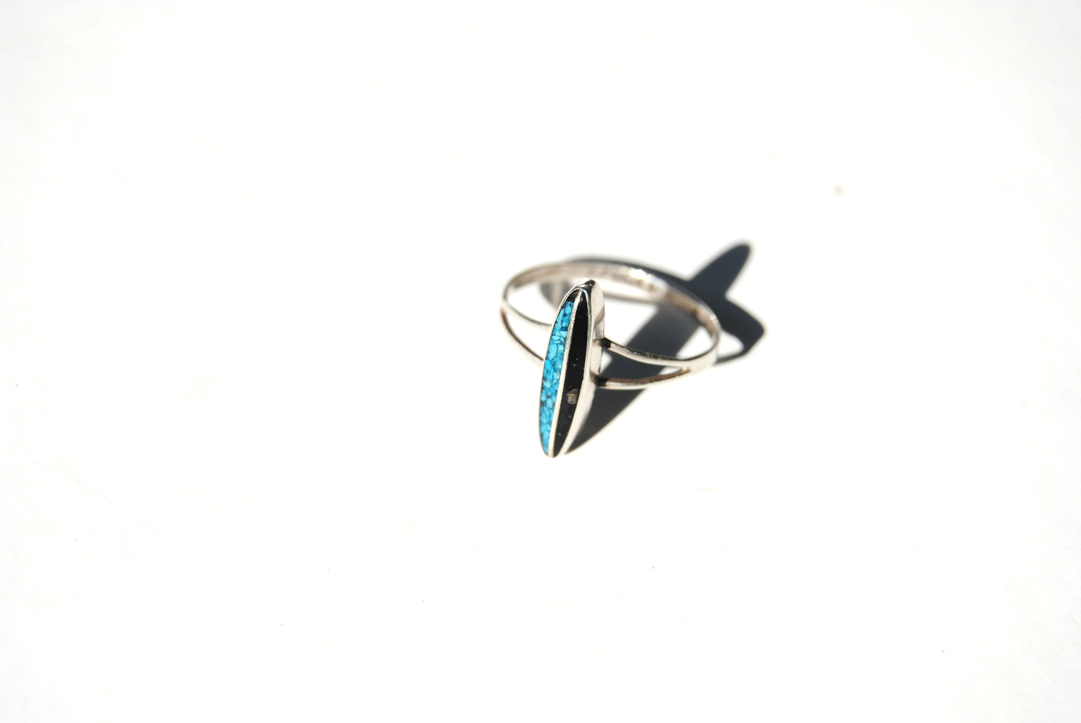 This vintage sterling silver piece features onyx and crushed turquoise. Size 5.