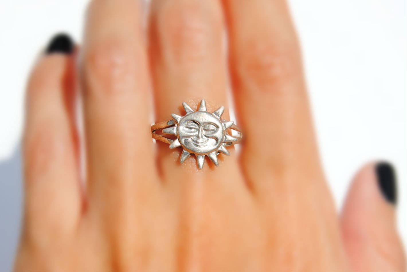 Vintage sterling silver sun ring. Size 7.25 Hallmarked .925.