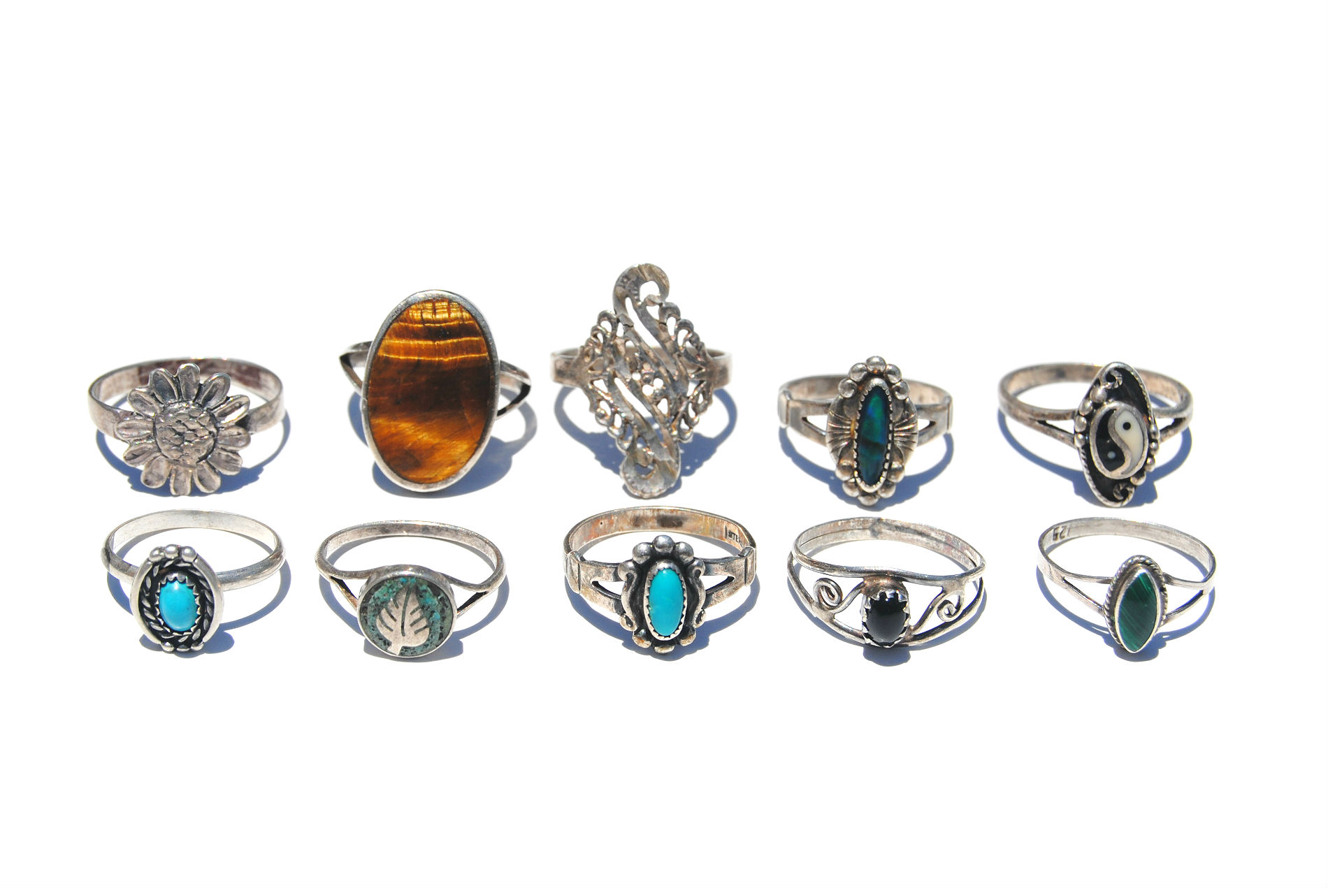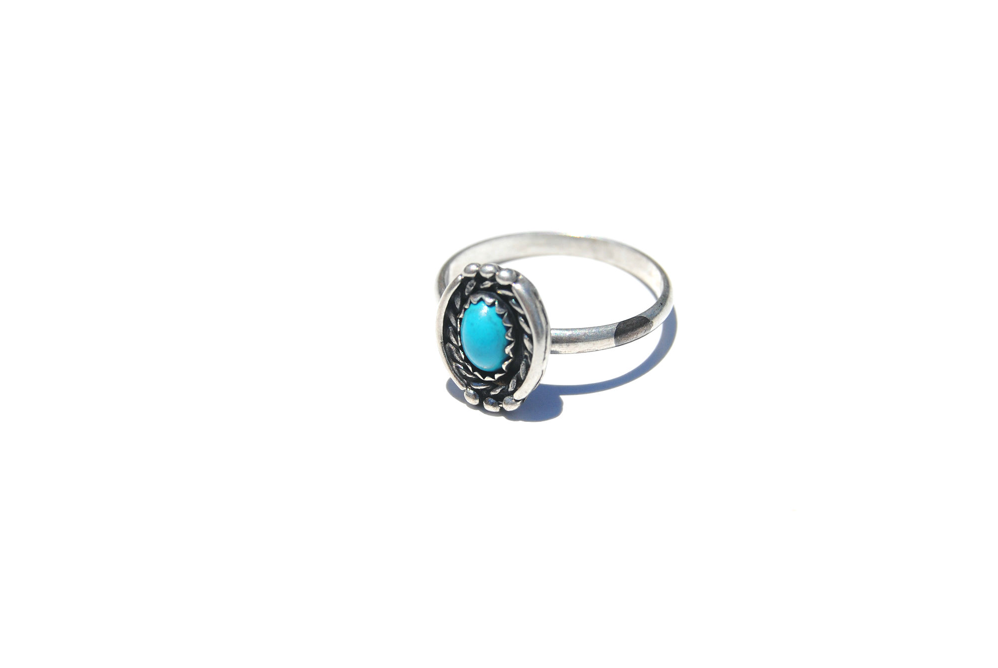 Vintage .925 sterling silver Navajo braided turquoise ring. Size 5.
